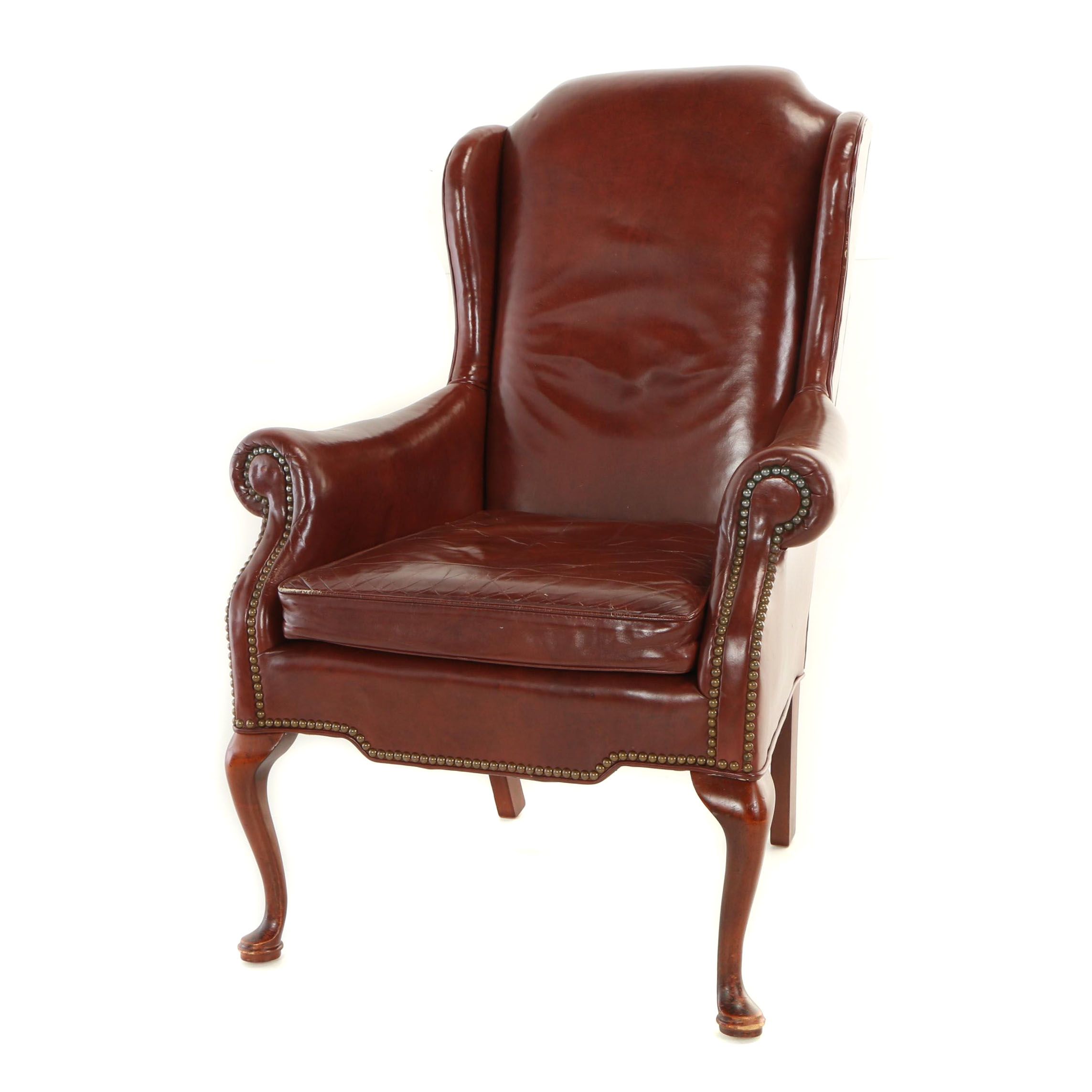 Queen Anne Style Leather Wingback Armchair