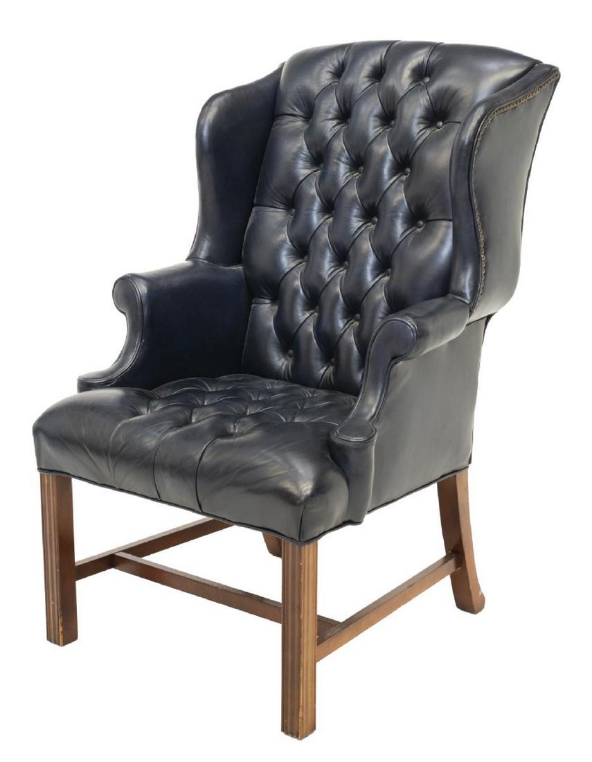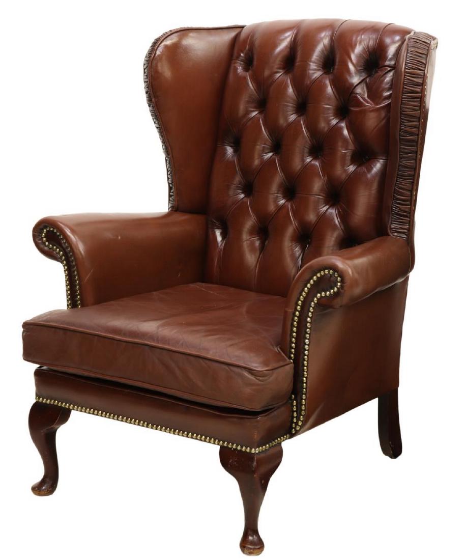 Chippendale Style Buttoned Leather Wingback Chair