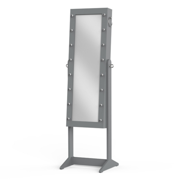 Gray Marquee Jewelry Armoire Mirror On Stand