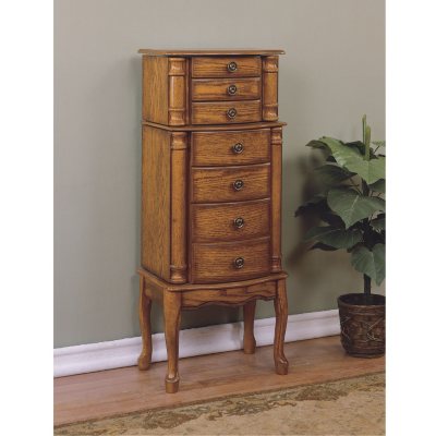 Bowery Hill 7 Drawer Jewelry Armoire In Warm Oak